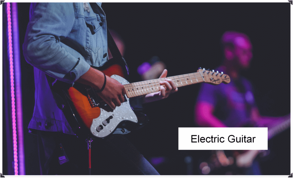 There is dominant focus on electric guitar, supported by electric bass and drums with one or more singers